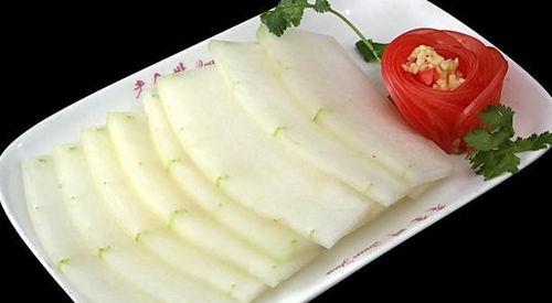 将白瓜洗净切片,用蒜末、盐、鸡精等调料炒熟即可。简单又美味,非常适合经期食用。